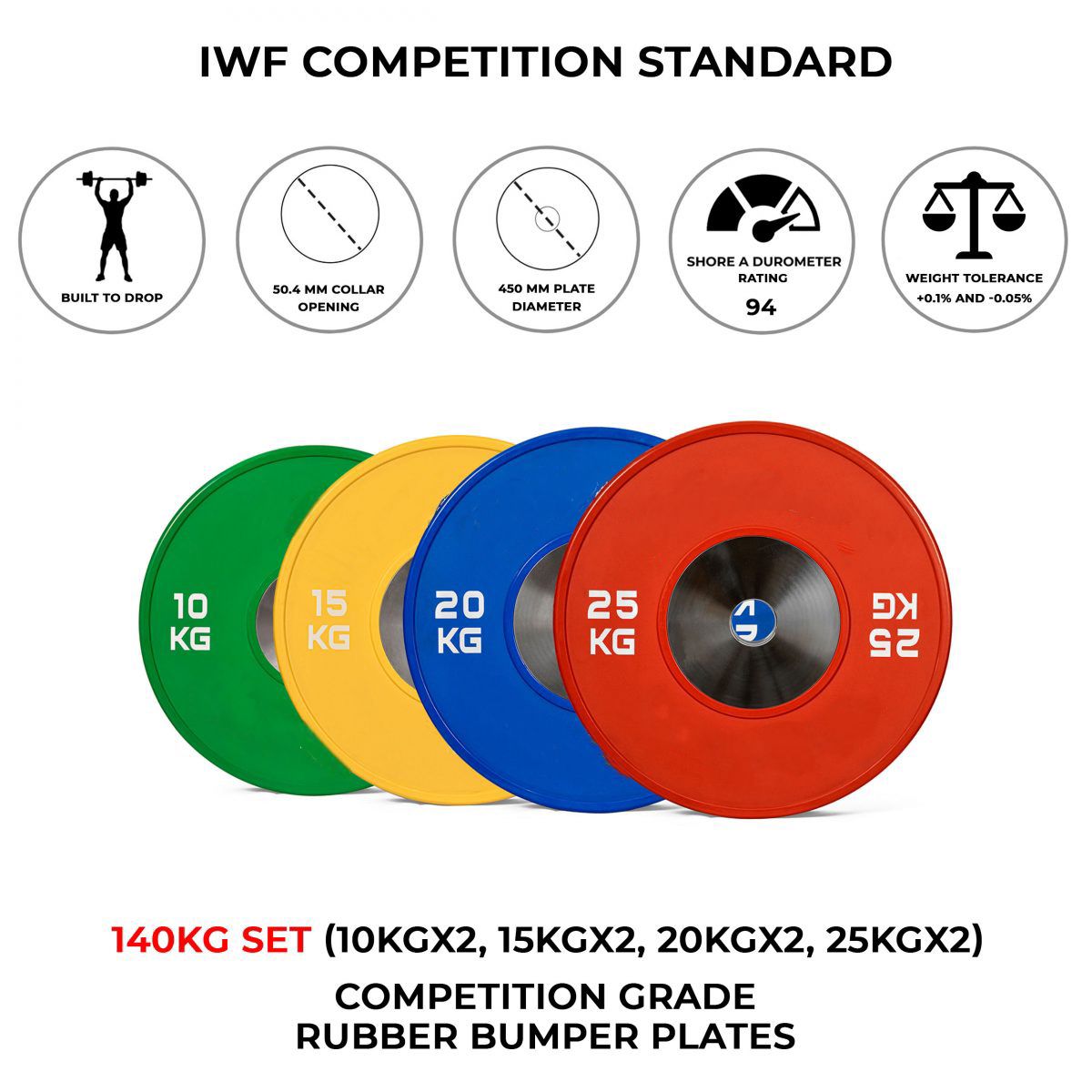 - Weight Calibration & Steel Disc Insert: One of the distinctive factors which separates these Competition Bumper Plates from Standard Bumper Plates is the weight accuracy & consistency. These plates are made to be accurate within the IWF rules, i.e., +0.1% and -0.05%, meaning a 20kg plate only has a 20gm margin error which makes you assured about what exact weight you are lifting. These Competition Bumper Plates comes with a chrome-plated steel disc insert which consists of two sections that are bolted together with stainless steel bolts for securing the rubber from impacts, and also these steel discs are meant to concentrate the weight by which the thickness of the plates reduces.