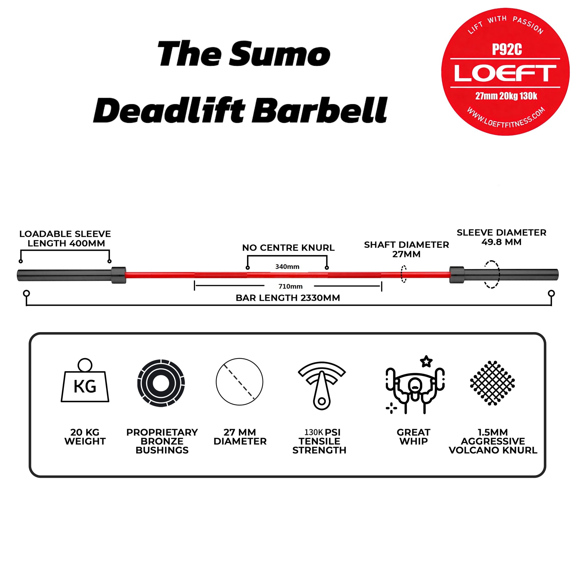 STRICTLY FOR DEADLIFT USE: LOEFT P92C Sumo Deadlift Barbell is a perfect addition to both home gyms and commercial fitness centers and suitable for a variety of users. It is meant strictly for deadlift use and should not be dropped from shoulder height. Also for both conventional and sumo deadlifts